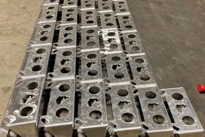 Raw Brackets lined up and waiting to be powder coated! After powder coat they will be smooth to the touch and ready for install.